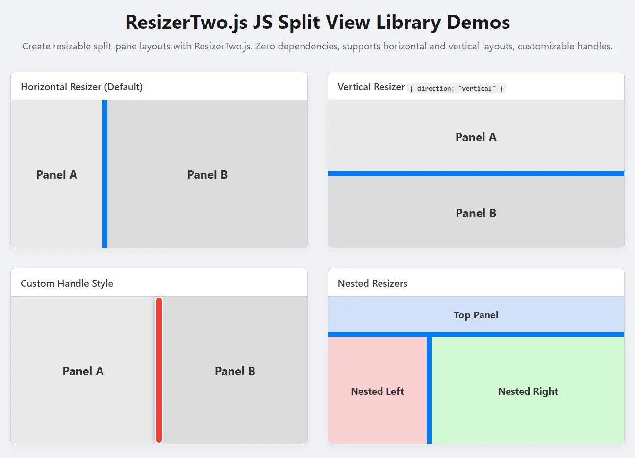 Tiny Split View Library for Two Panels – ResizerTwo.js