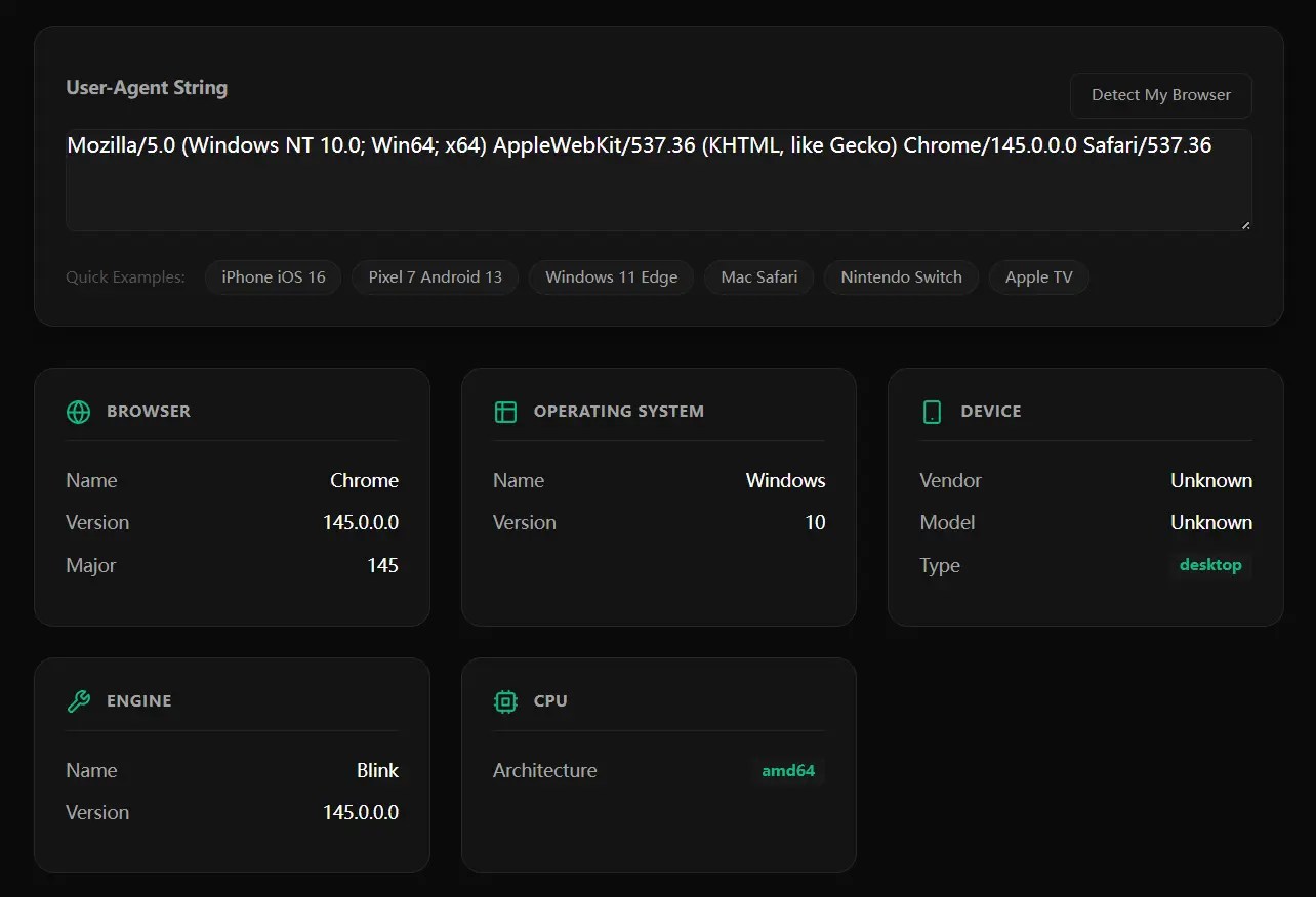 TypeScript User-Agent Detection for Browser & Node.js – ua-parser-modern