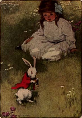 There was nothing so VERY remarkable in that; nor did Alice think it so VERY much out of the way to hear the Rabbit say to itself, `Oh dear! Oh dear! I shall be late!' ..(when she thought it over afterwards, it occurred to her that she ought to have wondered at this, but at the time it all seemed quite natural).
